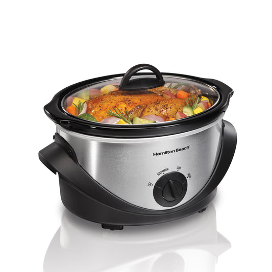 Olla Eléctrica de Lenta Cocción 3.8 Litros con Tapa de Vidrio Plata Hamilton Beach 33141