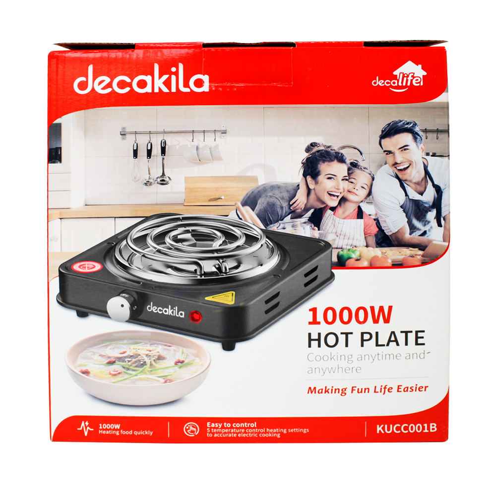 Parrilla Eléctrica de Plato Doble Quemador con Regulador de Temperatura Negro Decakila KUCC005B (Caja con 8 Piezas)
