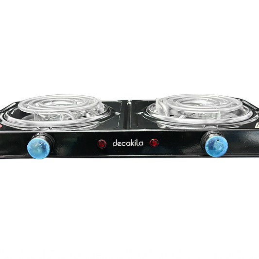 Parrilla Eléctrica de Plato Doble Quemador con Regulador de Temperatura Negro Decakila KUCC005B (Caja con 8 Piezas)