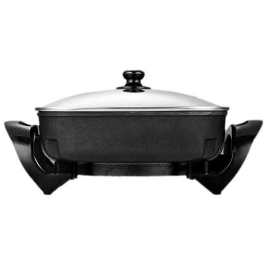 Sartén Eléctrico de 30 X 30 cm con Antiadherente y Tapa de Vidrio Negro Decakila KUEC051B (Caja de 4 Piezas)